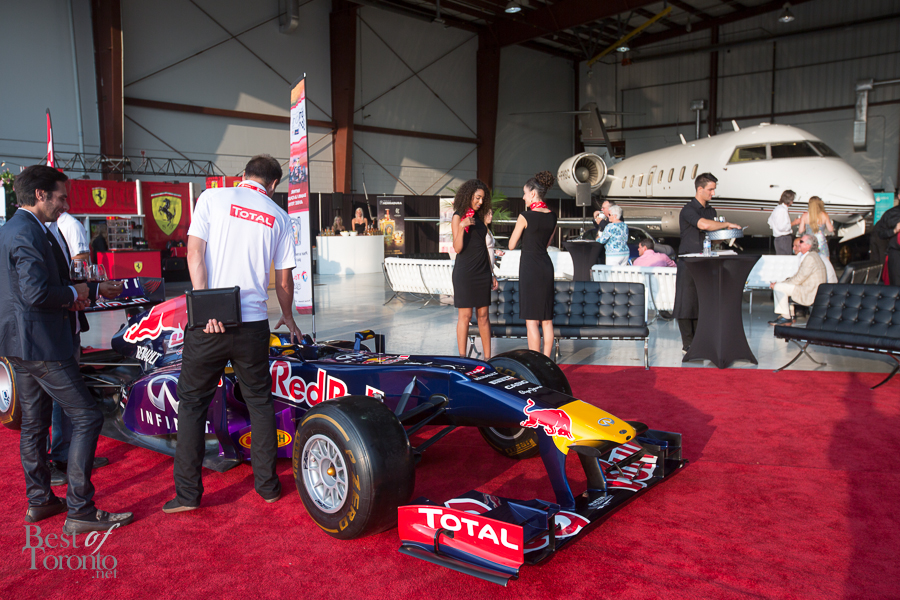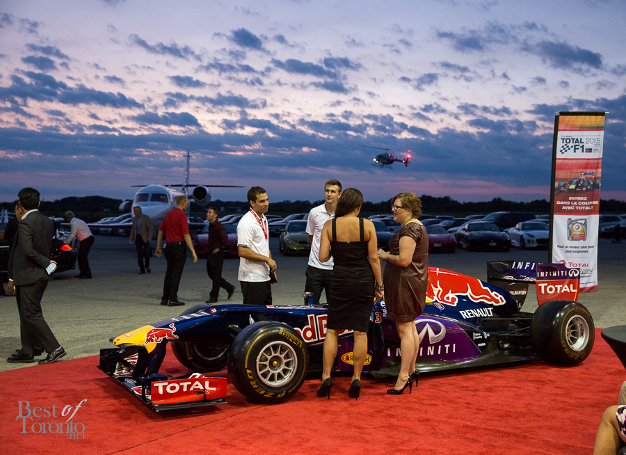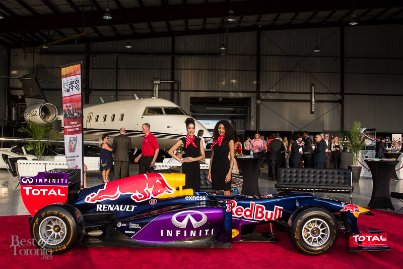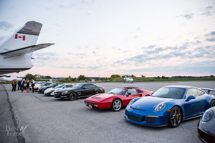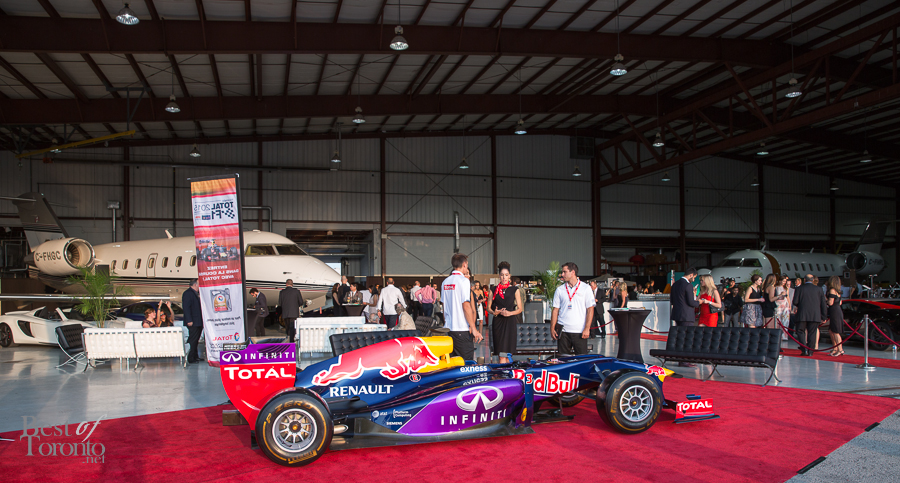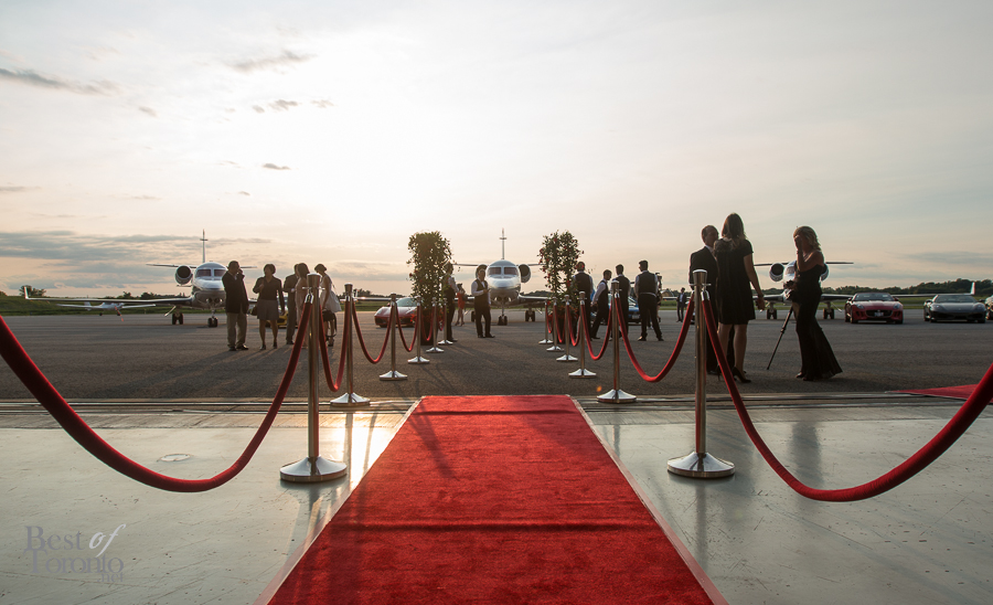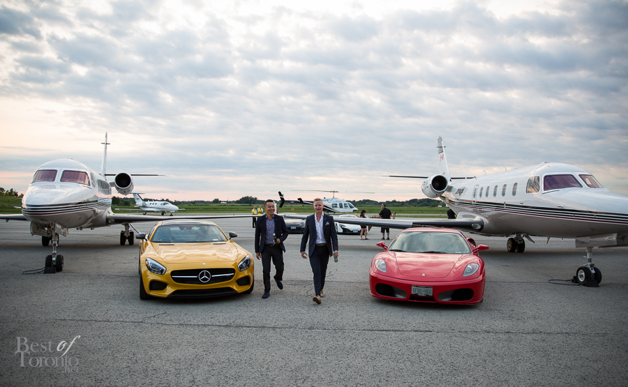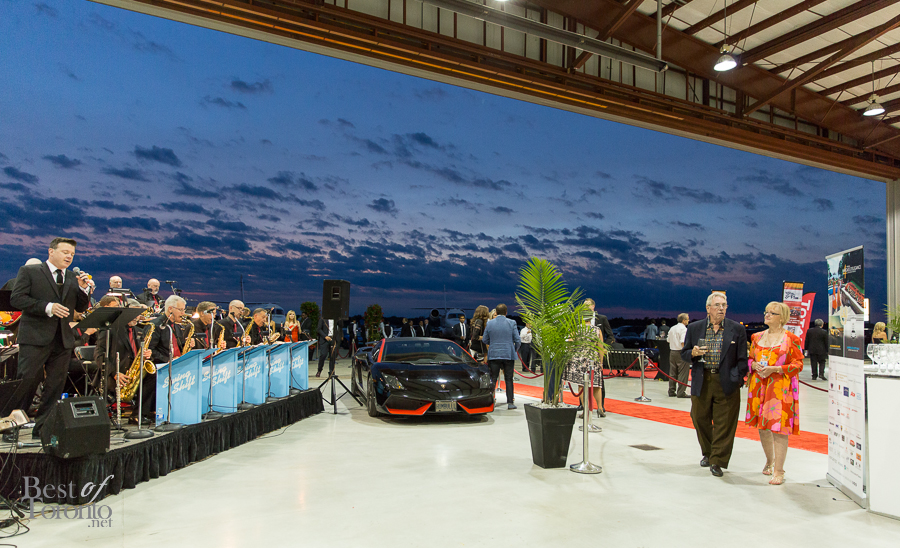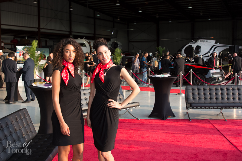 The second day of Marques d’Elegance was a massive event that pulled out all the stops to dazzle your senses! Held at Hamilton Airport’s Jetport, the large hanger was the scene for taking in the well-appointed private jets and 25 supercars on display. One included a Formula One car from Infiniti Red Bull Racing with Formula One Champion, Sebastian Vettel. As a bonus, Canadian crooner, Matt Dusk, was a surprise entertainer who fit perfectly with the band, making the classy soiree even more classy. Auction winners bid on helicopter rides on the spot.