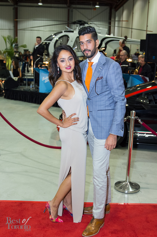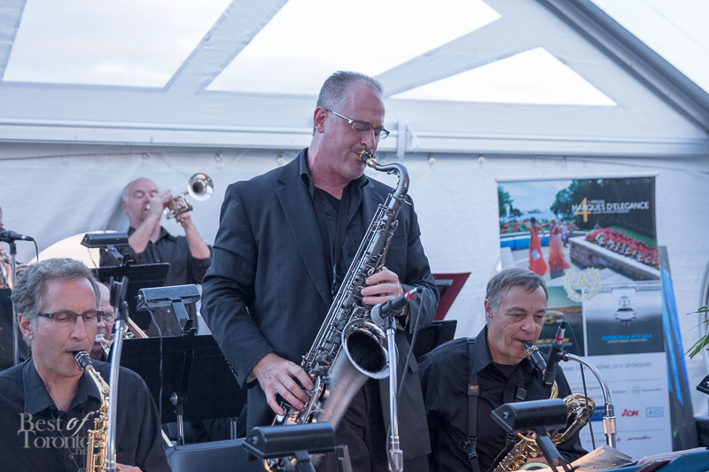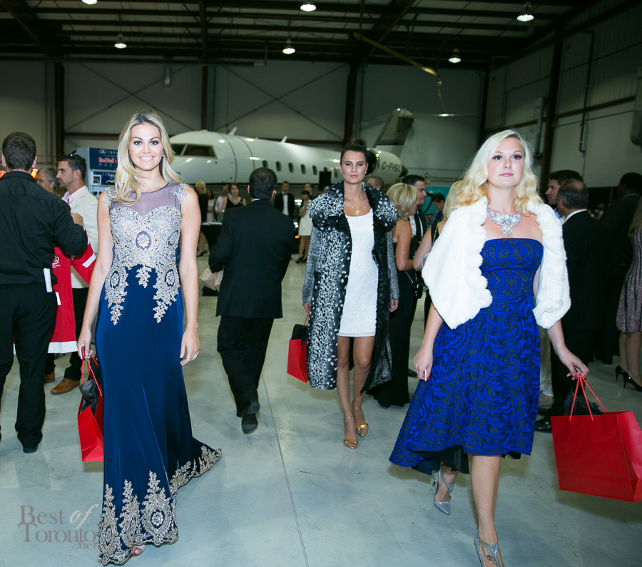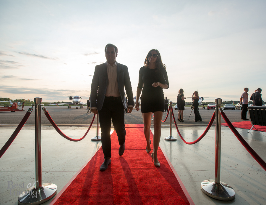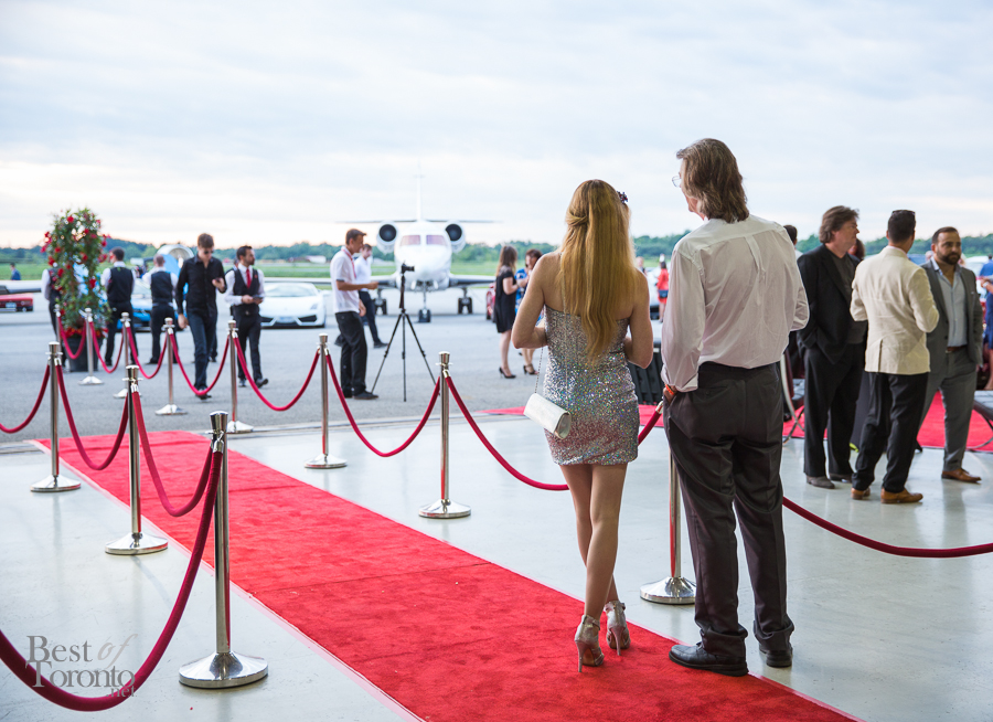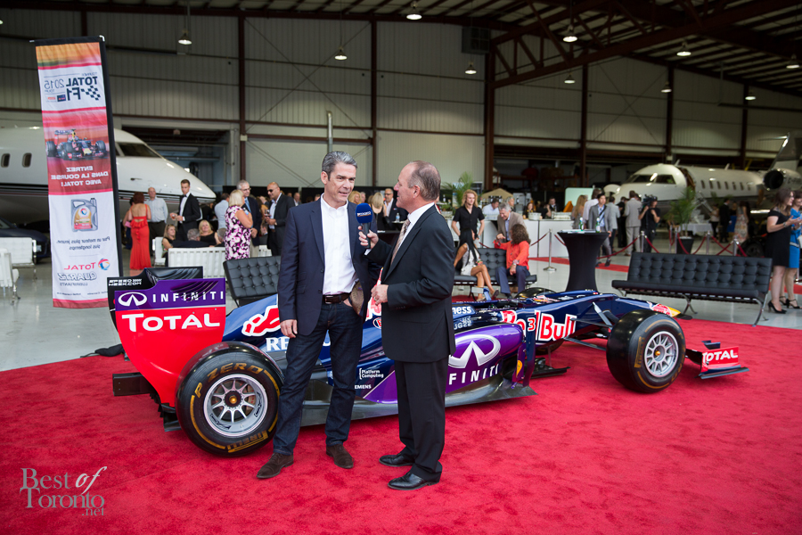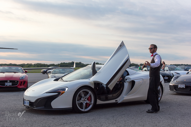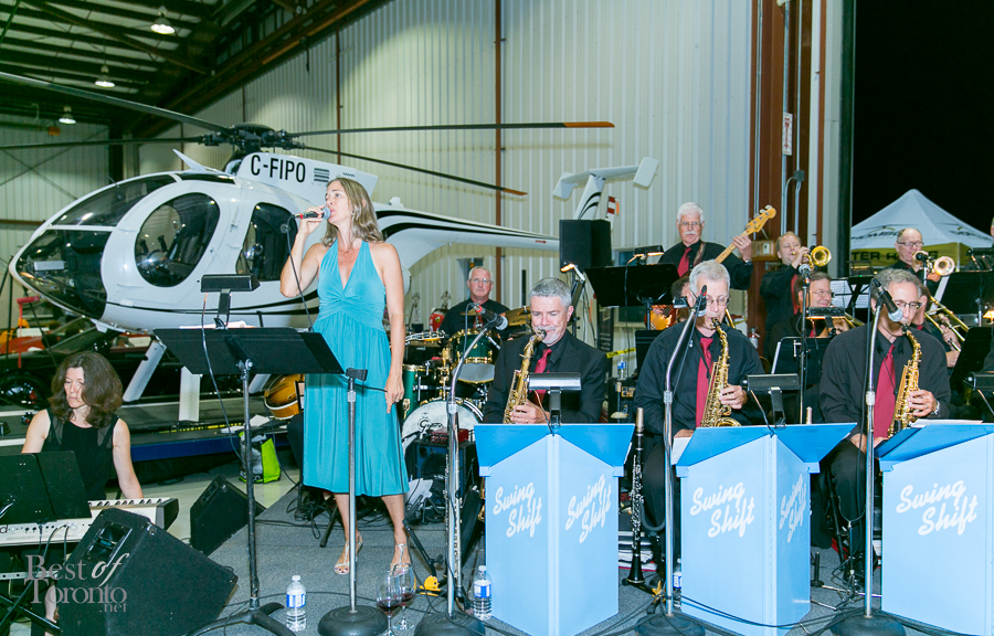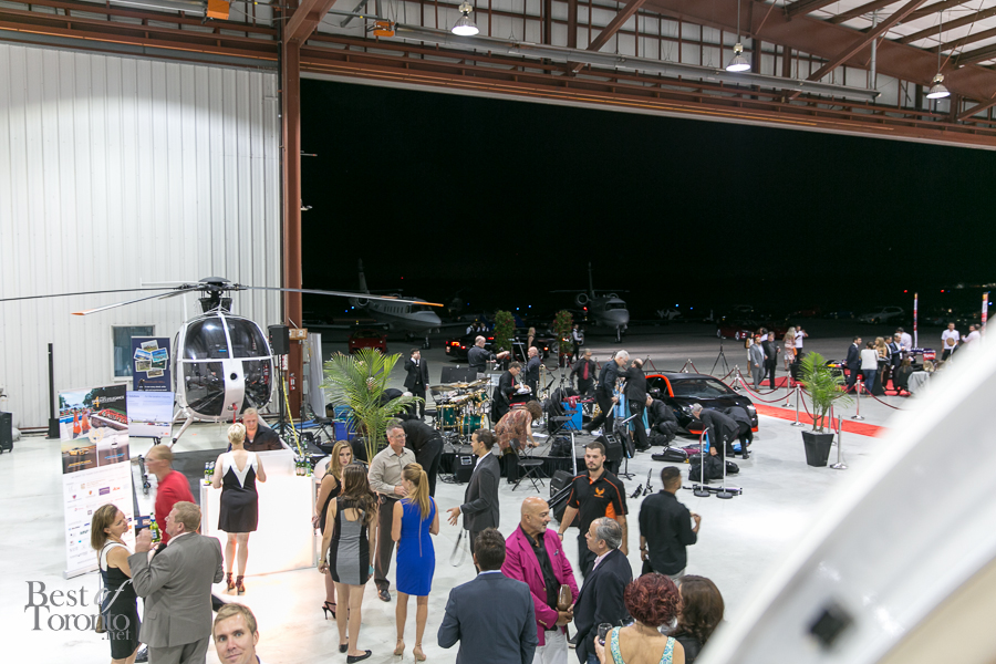 The second day of Marques d’Elegance was a massive event that pulled out all the stops to dazzle your senses! Held at Hamilton Airport’s Jetport, the large hanger was the scene for taking in the well-appointed private jets and 25 supercars on display. One included a Formula One car from Infiniti Red Bull Racing with Formula One Champion, Sebastian Vettel. As a bonus, Canadian crooner, Matt Dusk, was a surprise entertainer who fit perfectly with the band, making the classy soiree even more classy. Auction winners bid on helicopter rides on the spot.