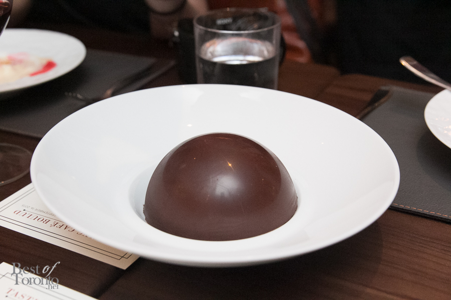 French desserts are always a highlight, obviously and Boulud didn’t disappoint with some delectably entertaining sweets. Everyone who knows about it, raves about the profiteroles with vanilla ice cream, dark chocolate sauce and, candied pecan. With the presentation of that melting chocolate shell… how could you not?