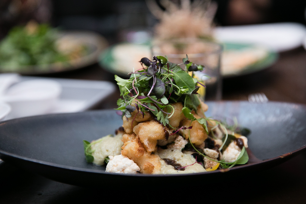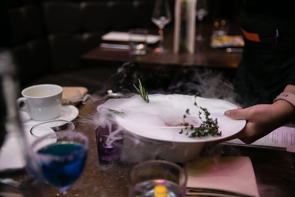 With the changing of the seasons, a more elaborate menu will follow to give other ingredients their time to shine. Amongst coffee balsamic caprese, minty creamed asparagus, and lobster ravioli, even the starters are enchanting. “Trio of Cauliflower” is done uniquely 3-ways: charred, pickled, and fried with buttermilk. The cauliflower sits on a bed of avocado mousse complete with roasted garlic and poblano. For a more indulgent option, the “A&W” fried chicken bites incorporates lush roquefort crème frâiche, and De Arbol chili vinaigrette as dipping sauces. Let’s not forget about the “Tartare”, a smokey show-stopper that tastes just as good as it looks. USDA prime beef tenderloin is marinated with Remy Martin and parmigiano churro with a quail egg nestled inside.