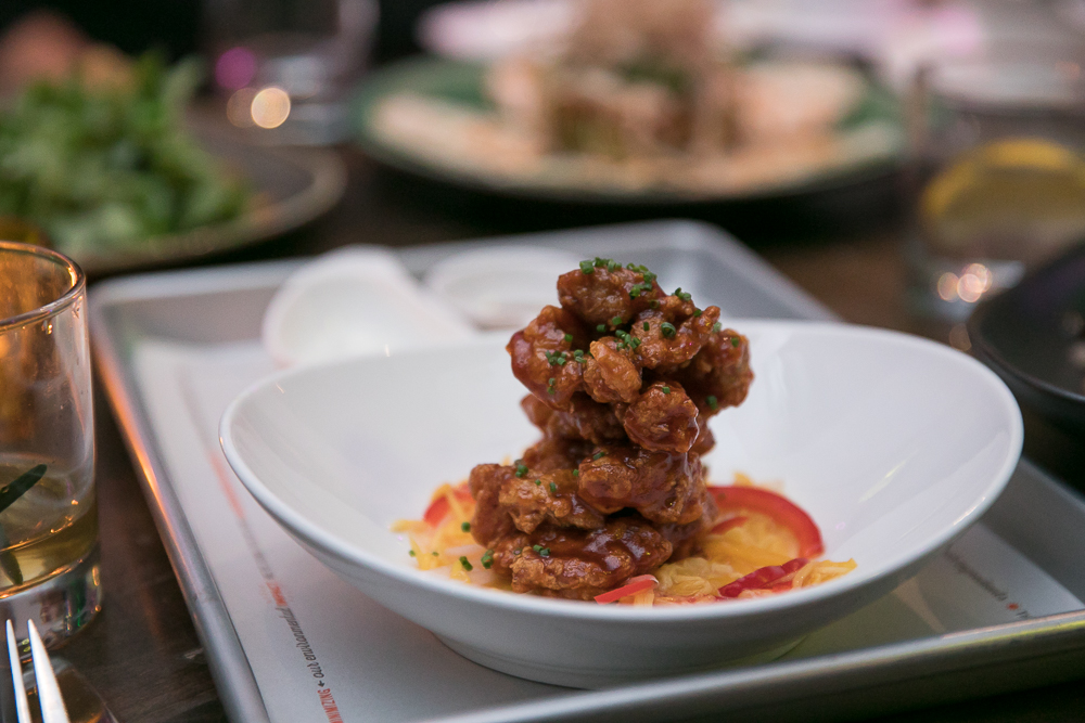 - “A&W” Fried Chicken Bites | Roquefort crème fraiche, pickled mango, De Arbol chili vinaigrette