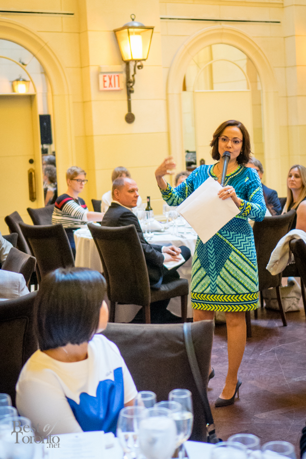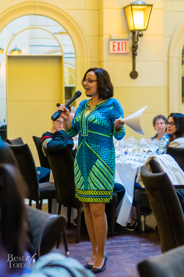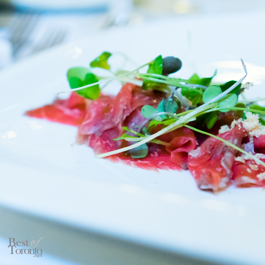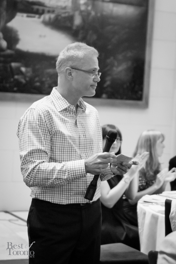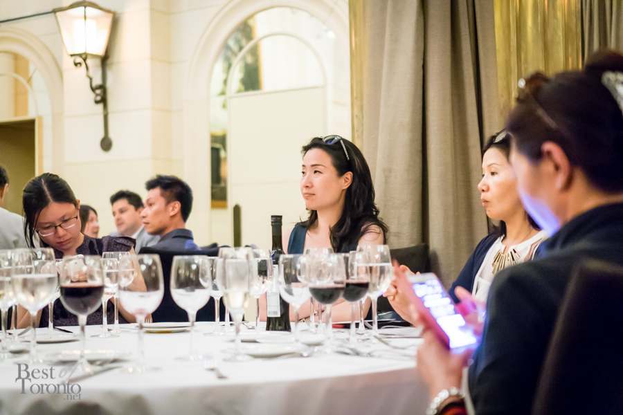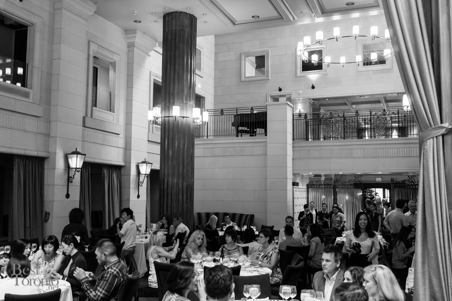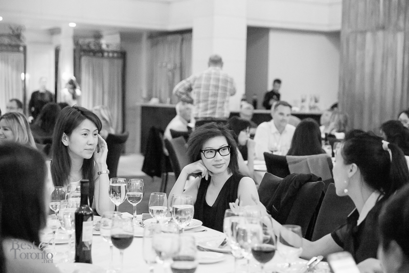 We walked into the beautifully appointed grand ballroom of the Windsor Arms Hotel where the dinner would be held. The table setting was elegant and every seat was sold. The second floor provided some stunning views of the dinner below. After some brief words from Cushing and U-Feast CEO Terry Mocherniak, our “threes” themed dinner began.