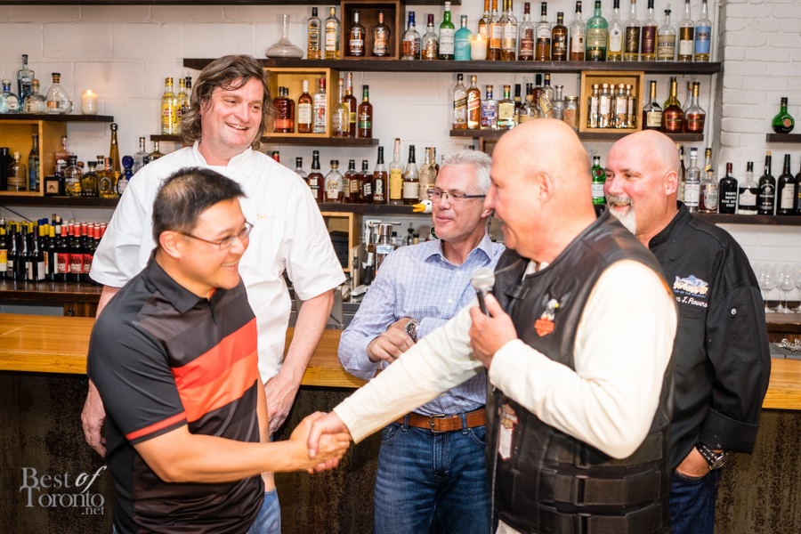 Celebrity “biker chef” Ivan Flowers flew in from California to collaborate with Böehmer’s chef and owner, Paul Böehmer, on the “hog” themed menu. Flowers is the executive chef at Top of The Market in San Diego. Fellow bike lover, comedian, and TV personality, Mike Bullard was the emcee of the night.