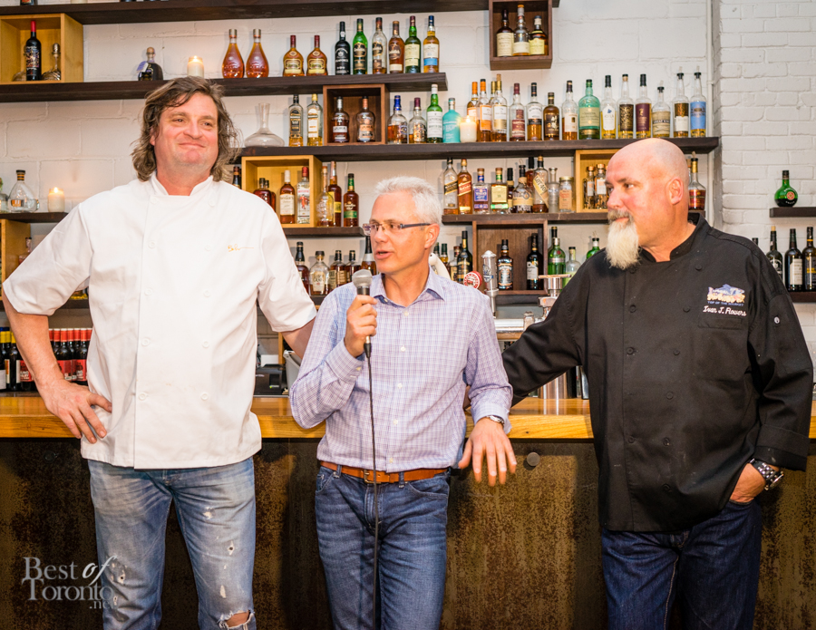 Celebrity “biker chef” Ivan Flowers flew in from California to collaborate with Böehmer’s chef and owner, Paul Böehmer, on the “hog” themed menu. Flowers is the executive chef at Top of The Market in San Diego. Fellow bike lover, comedian, and TV personality, Mike Bullard was the emcee of the night.