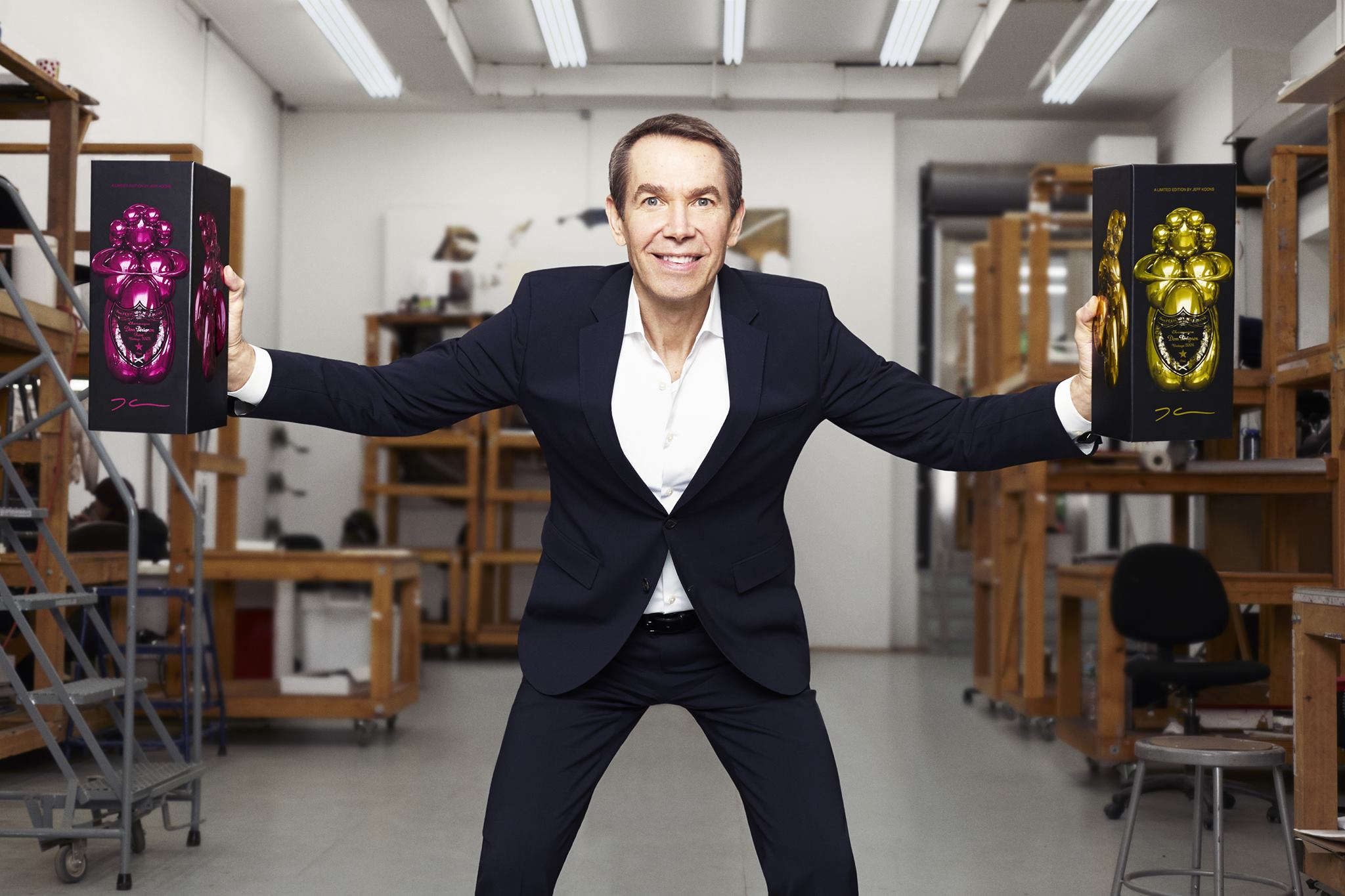 Jeff Koons with the limited editions of Dom Perignon