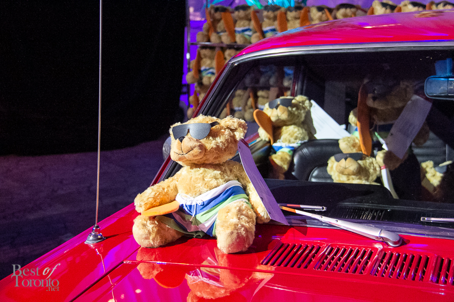 The 27th annual Teddy Bear Affair was held on November 2, 2013 at the Metro Toronto Convention Centre. This year the South Building halls were transformed to the sunny, beach scenery of the California coast and the heydays of Route 66. On the walls, panoramas of sunsets, cliff sides, beaches, and piers were projected to provide an immersive environment. Palm trees lined the pathways and classic cars were on display. There were models dressed as lifeguards and even a large sand sculpture of a teddy bear that was being sculpted live.