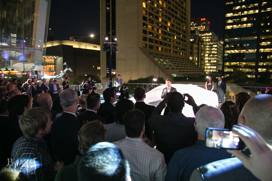 It was a unique way to celebrate the 2014 Cadillac CTS debut to Canada which involved using a crane to hoist one of these cars up to the third-story terrace of Shangri-La Hotel. Industry, media, bloggers and socialites came out to the launch for the latest iteration of Cadillac’s mid-size luxury sedan. The evening featured champagne, an icebar of oysters, cocktails by Barchef, Ossington’s Philip Sparks making custom bow-ties on site for guests to take home and much more. It was great to be able to rub elbows with General Motors representatives and the auto media folk.