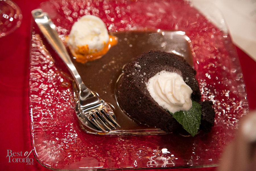 The spread was grande and with stomachs at nearly 100% capacity… there was still dessert to arrive at the table! The evening ended with a molten chocolate lava cake. It sat in a pool of chai tea inspired caramel sauce with a snow white scoop of coconut ice cream made especially for the restaurant by Marble Slab Creamery.