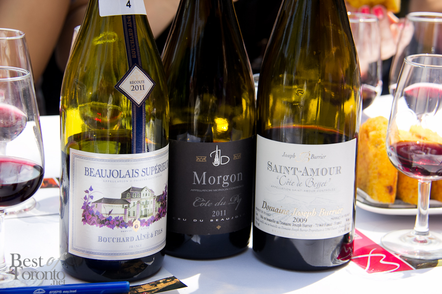 Wines: Bouchard Aîné& Fils, Beaujolais Supérieur, 2011 (#4), Jacques Dépagneux, Morgon, Côte du Py, 2011 (#5), and Joseph Burrier, Saint-Amour, Côte de besset, 2009 (#6).