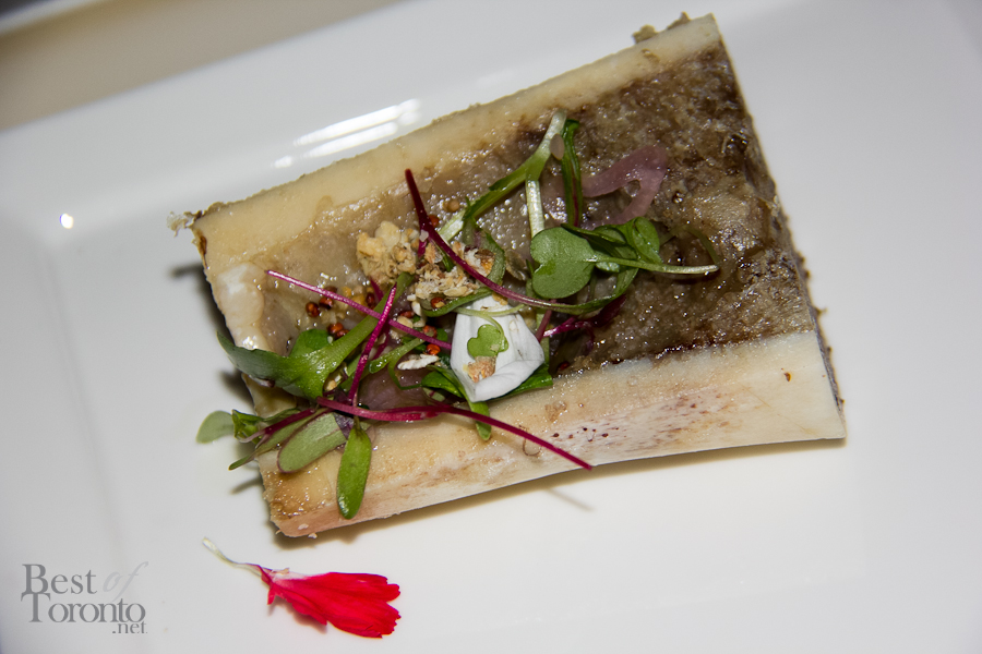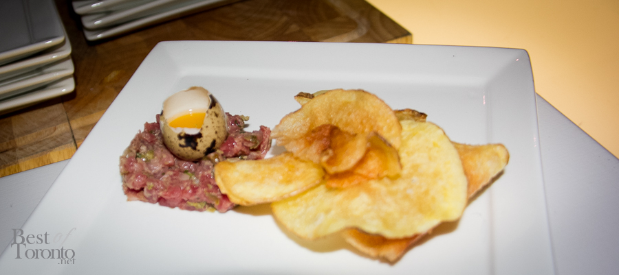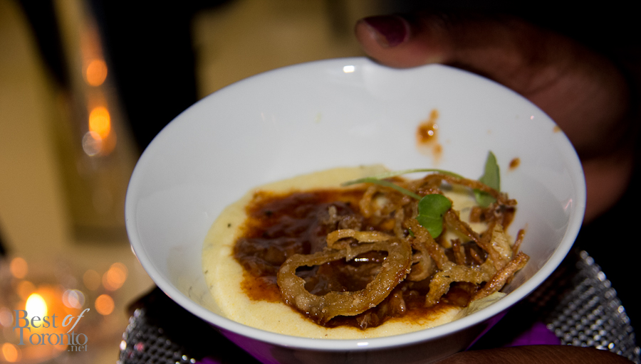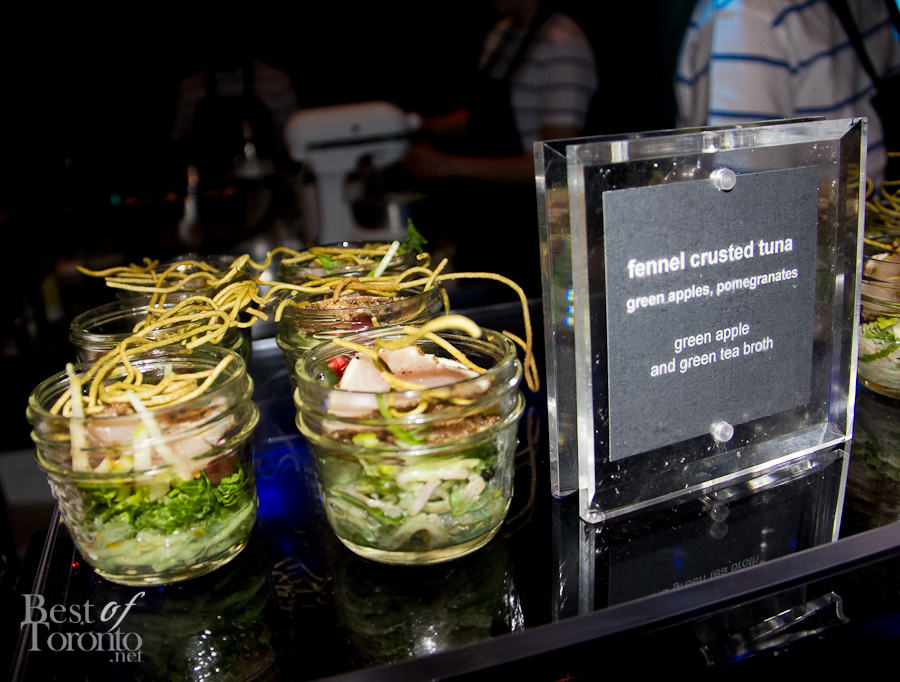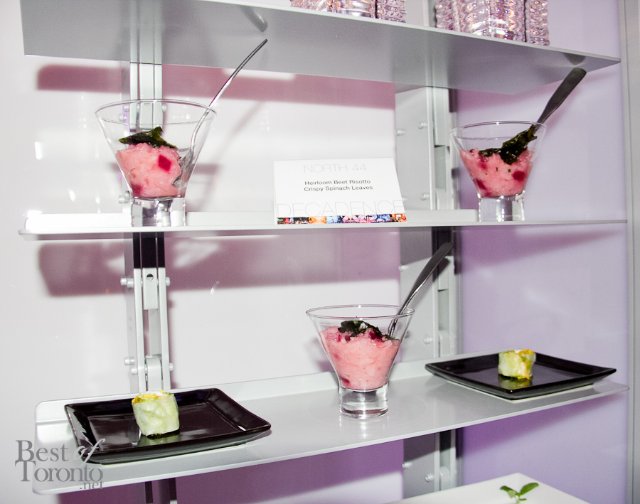 The Daily Bread Food Bank hosted their second annual “Ultimate Food Challenge” featuring a culinary competition with 3 chefs: Devan Rajkumar of The Food Dudes, Alexandra Feswick of The Samuel J Moore at The Great Hall and Jason Parsons of Peller Estates Winery. The event brought 250 food loving philanthropists out to the gorgeous Corus Quay on the waterfront who got to sample wine from Peller Estates, beer from Beau’s and, of course, try some great food. My favourite was the ceviche with popped corn and pickled pablano pepper made by Daily Bread’s own Catering Kitchen. It got nabbed up quickly.