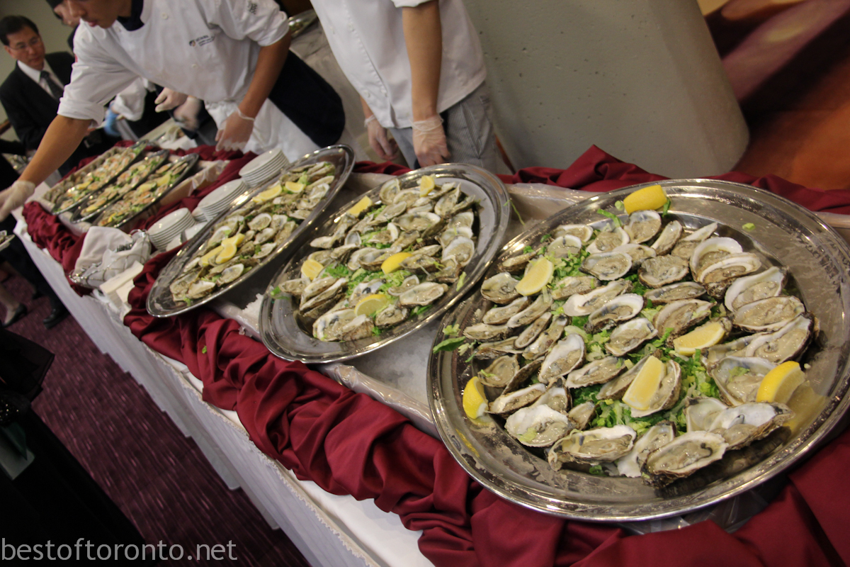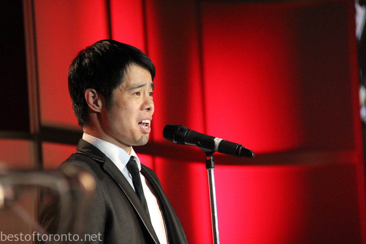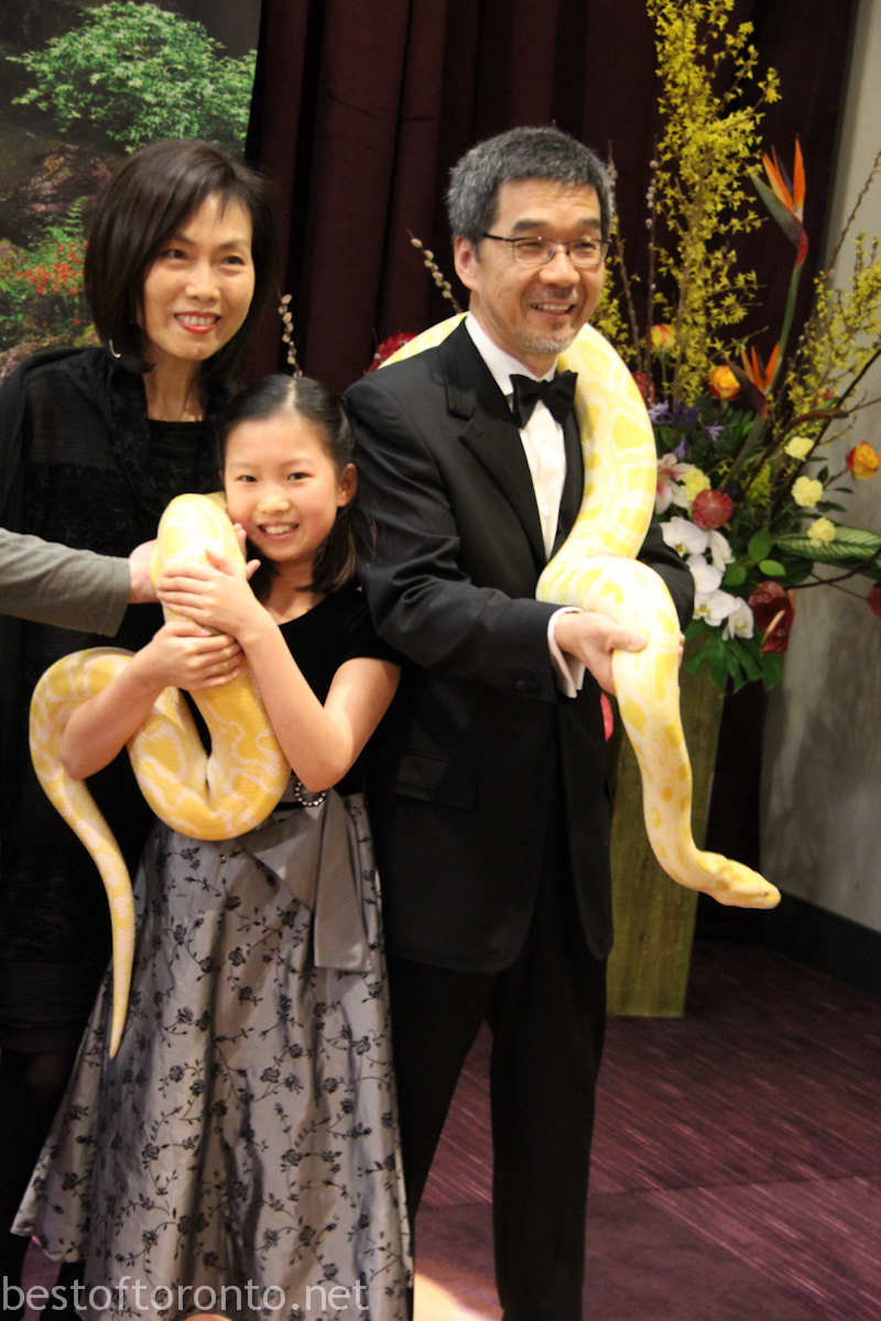 Highlights include photo opportunities with snakes, the HSBC ice sculpture serving martinis, a raw oyster and clam bar by Raw, a sushi bar, delicious treats by Tundra Restaurant (pleasant surprise seeing you again, Eraj!). There was so much food during the reception that it could have been dinner itself but there was also a 3-course dinner as well. It was great to see the legendary Hazel McCallion, mayor of Mississauga, a regular supporter of Yee Hong. Frank Scarpitti, the mayor of the City of Markham, singing songs in Cantonese. The raffle featured big prizes such as a Lexus CT 200h hybrid and a Caribbean cruise for 7 nights. There was also a large room dedicated to a casino and many items up for bidding in the silent auction. There was a live auction before dinner, too. The evening was hosted by Francis D’Souza and Sangita Patel of City (recently rebranded from “Citytv”, by the way).