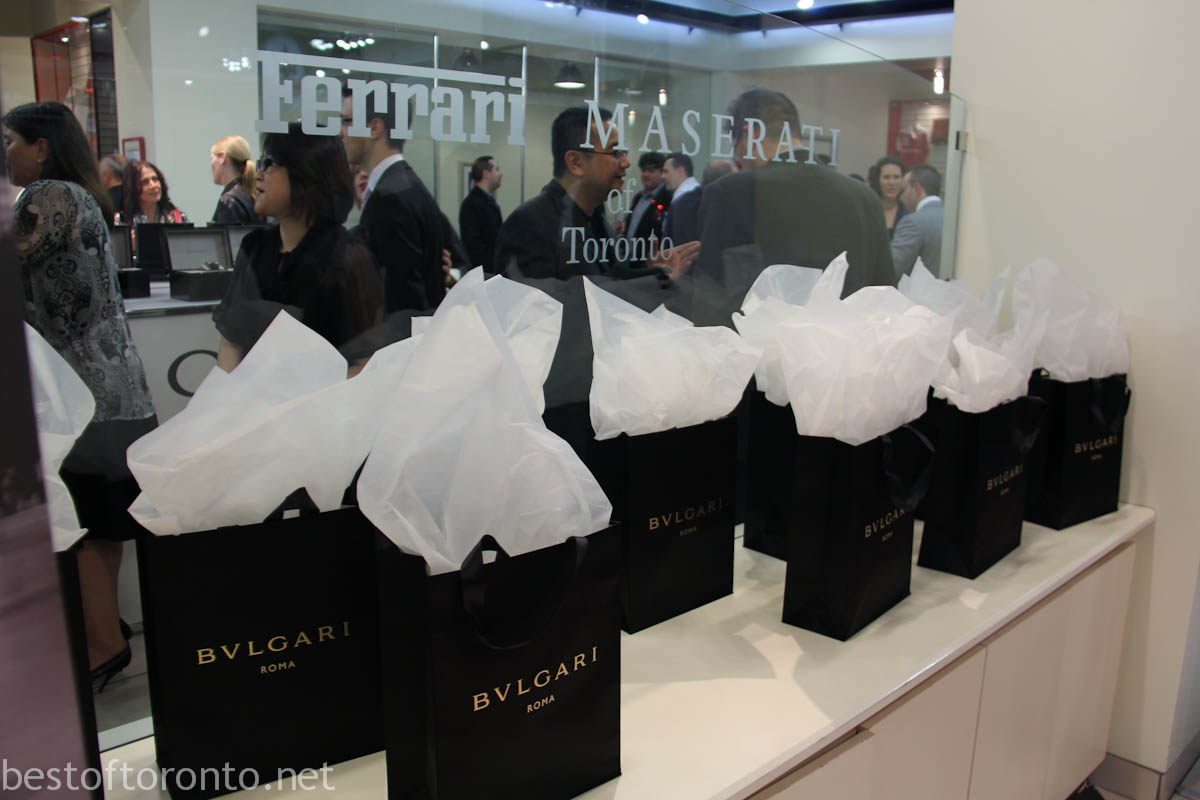 The Maserati of Toronto managers, Robert Vacca, Angela Coratti alongside Bulgari Corporation of America’s Nathalie Diamantis and Heather Schneider were on hand to discuss the subtle details of the product offerings of each of the high-end brands.