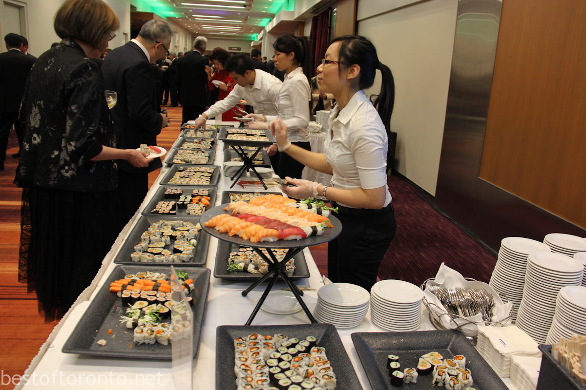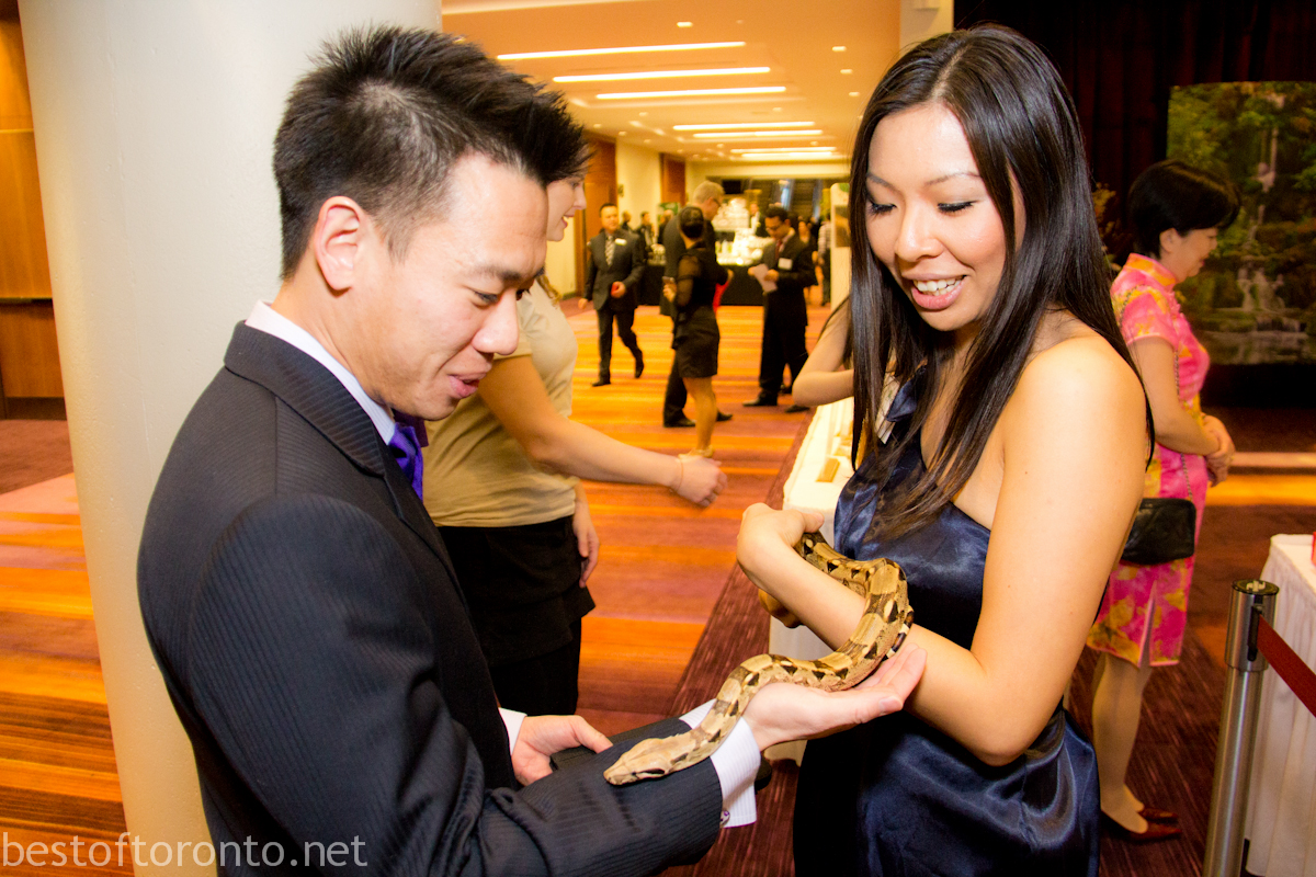 Highlights include photo opportunities with snakes, the HSBC ice sculpture serving martinis, a raw oyster and clam bar by Raw, a sushi bar, delicious treats by Tundra Restaurant (pleasant surprise seeing you again, Eraj!). There was so much food during the reception that it could have been dinner itself but there was also a 3-course dinner as well. It was great to see the legendary Hazel McCallion, mayor of Mississauga, a regular supporter of Yee Hong. Frank Scarpitti, the mayor of the City of Markham, singing songs in Cantonese. The raffle featured big prizes such as a Lexus CT 200h hybrid and a Caribbean cruise for 7 nights. There was also a large room dedicated to a casino and many items up for bidding in the silent auction. There was a live auction before dinner, too. The evening was hosted by Francis D’Souza and Sangita Patel of City (recently rebranded from “Citytv”, by the way).